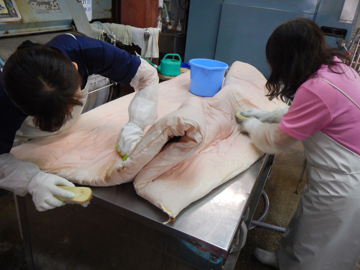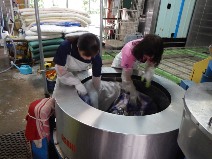 ふとんの丸洗いならダニだけではなく人の身体から出る塩分、脂肪まで落とすことができ、しかも仕上がりはふっくら。定期的なふとんの丸洗いで、健康な毎日をお過ごし下さい。クリーニングするふとんの素材などを確認してお預かりします。